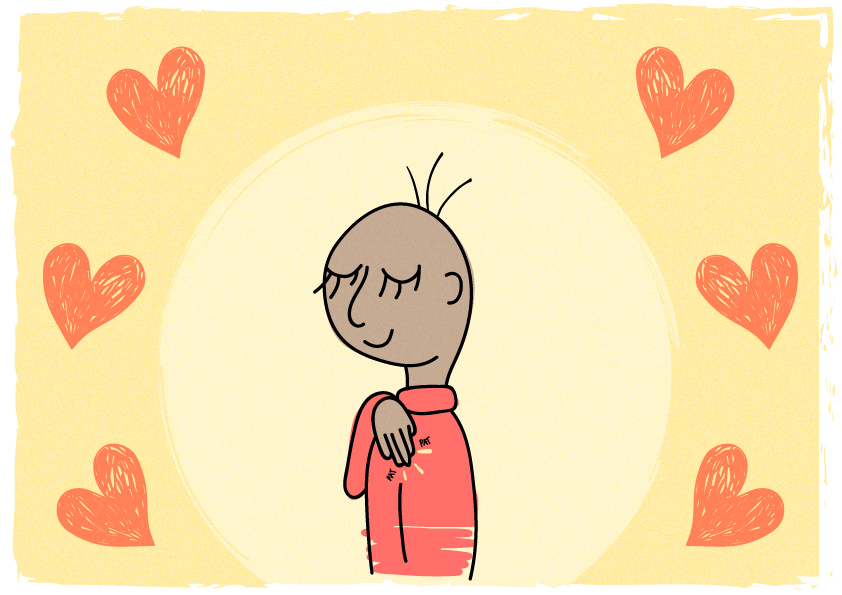 - Put a hand on your heart or to your cheek in a gesture of kindness, acceptance and comfort. You can accompany this gesture with some words you say to yourself. Find what works for you – it could be something along the lines of ‘may I be loved, may I be held, may I be at peace’, or ‘I am loved, I am seen, I am heard’, or ‘I am here, I am not alone, I am loved’