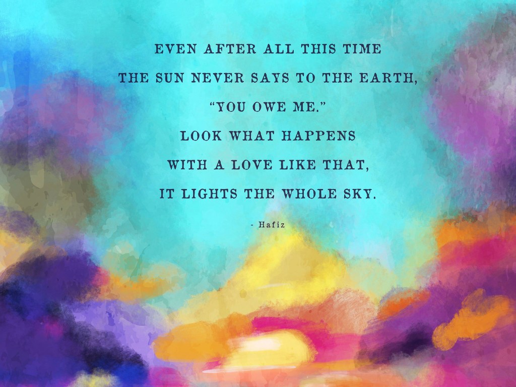 This is a way of behaving that opens you to gratitude and connection and so much more. Barbara Brown Taylor suggests blessing anything – trees, birds, sky. Begin by seeing it, truly for itself and as it is. Speak a blessing out loud, even if other people are around. Or, looking with the eye of the heart, pronounce a silent blessing and pay attention to what happens in the air between you and the other – flower, stone, dog, person.